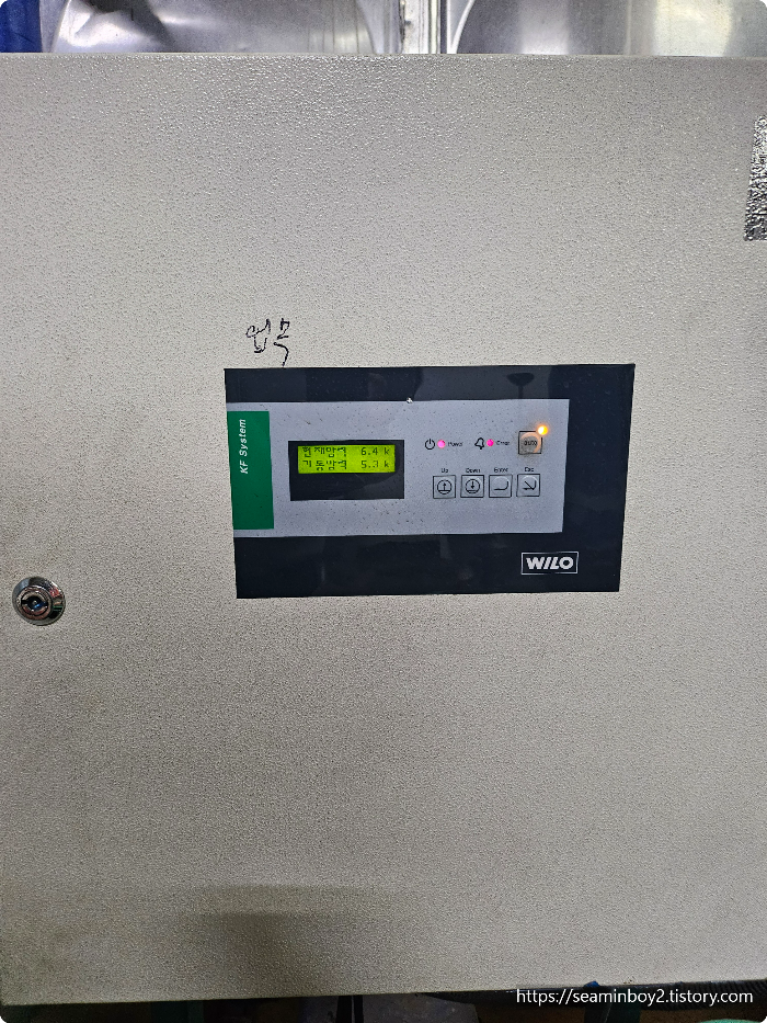 정해진 펌프 압력을 셋팅을 해두면 펌프 3 대중 1대에서 2대가 교대로 운용이 되면서 일정압력을 유지를 합니다. 압력이 낮아지면 3대까지도 돌아가기도 합니다. 압력이 천천히 내려가면 1대의 펌프가 거기에 맞춰 rpm을 조절하면서 운용됩니다.
