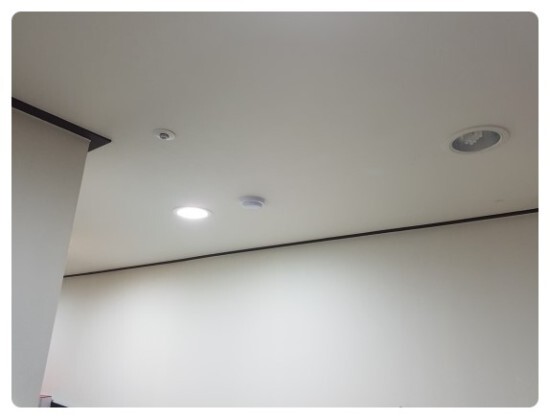 사람들이 많이 이용하는 중랑구 상가에서 최근 소방점검을 받고 지적사항이 나와 감지기 추가설치 및 비상구 유도등 설치를 의뢰하셨습니다